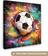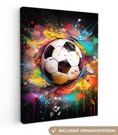 Tableau sur toile Voetbal - Peinture - Couleurs - Zwart - Wit - 120x180 cm - Décoration murale XXL