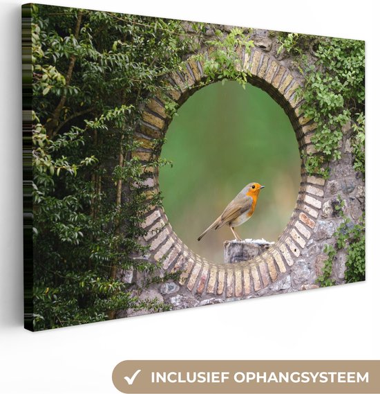 Tableau sur toile Vogel - Vue à travers - Rouge-gorge - 150x100 cm - Décoration murale