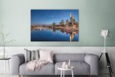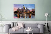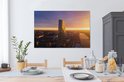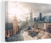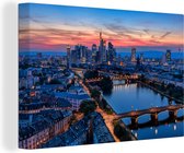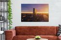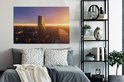 Tableau sur toile Vue aérienne du coucher de soleil à la Banque centrale européenne à Francfort, Allemagne - 120x80 cm - Décoration murale