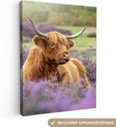 Tableau sur toile Scottish Highlander - Marron - Buissons - 90x120 cm - Décoration murale