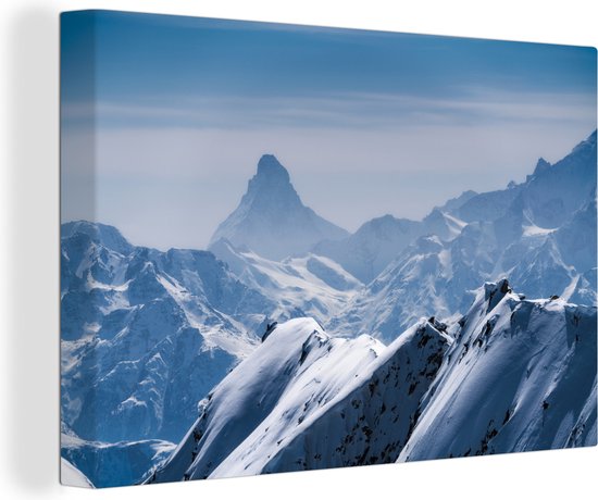 Peintures sur Toile - Montagnes Enneigées en Suisse - 90x60 cm - Décoration murale