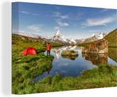 Tableau sur toile Camping dans un paysage suisse - 90x60 cm - Décoration murale