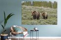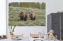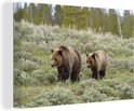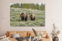 Tableau sur toile Yellowstone - Ours - Herbe - 150x100 cm - Décoration murale