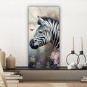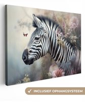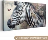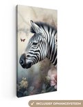 Tableau sur toile Zebra - Animaux sauvages - Papillon - Fleurs - 20x40 cm - Décoration murale