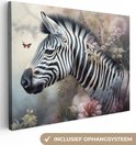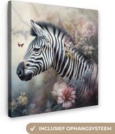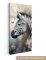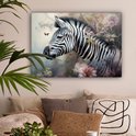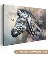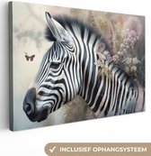 Tableau sur toile Zebra - Animaux sauvages - Papillon - Fleurs - 80x60 cm - Décoration murale