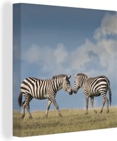 Tableau sur toile Zèbres qui jouent - 50x50 cm - Décoration murale
