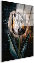 Impression sur verre de sécurité ESG de 4 mm d'épaisseur, avec support mural et entretoises pré-montés. La forme ronde de l'impression sur verre souligne subtilement le caractère caractéristique de l'image.
