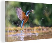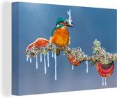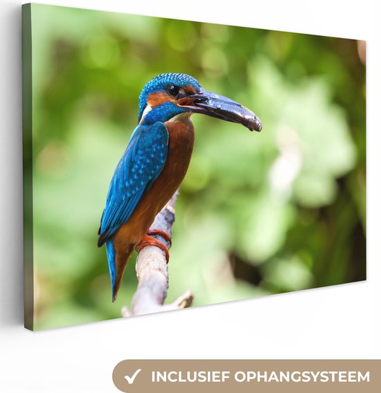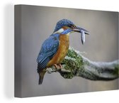 Tableau Tableau Martin-pêcheur - Poisson - Arbre - 120x80 cm - Décoration murale