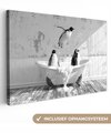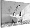 Peintures sur toile - Âne - Animal - Vintage - Baignoire - Zwart - Wit - Salon - Chambre