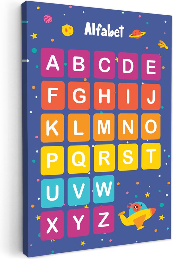 Tableau toile 40x60 cm - Décoration murale chambre enfant Alphabet - Éducatif - Apprentissage des lettres pour enfants - Espace - Décoration murale chambre bébé - Décoration chambre garçon et fille - Accessoires Bébé - Peintures
