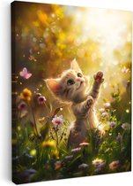 Peintures sur toile - Chaton - Animal - Nature - Fleurs - Salon - Chambre