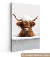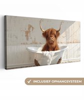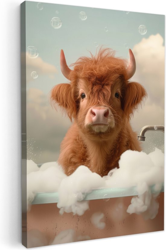 Tableau toile 80x120 cm - Décoration murale salle de bain Highlander écossais - Bain - Mousse - Vache - Décoration murale murale WC - Accessoires décoratifs - Décoration murale Toilettes - Peintures sur toile