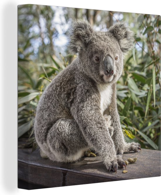 Tableau Toile Koala - Bois - Plantes - 90x90 cm - Décoration murale