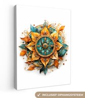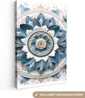 Peintures sur toile - Mandala - Blauw - blanc - Or - Salon - Chambre