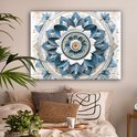 Tableau toile Mandala - Blauw - blanc - Or - 120x90 cm - Décoration murale