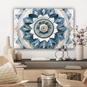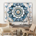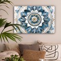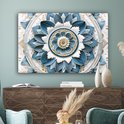 Tableau toile Mandala - Blauw - blanc - Or - 150x100 cm - Décoration murale