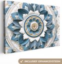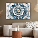 Peintures sur toile - Mandala - Blauw - blanc - Or - Salon - Chambre