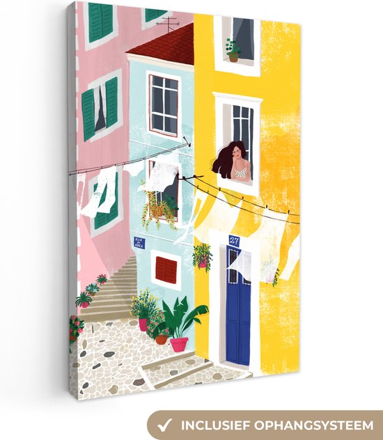 Peintures sur toile - Rue - Lavage - Jaune - Femme - Salon - Chambre