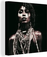 Tableau toile Rue - Wax - Jaune - Femme - 60x90 cm - Décoration murale