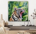 Tableau Toile Tigre - Tête - Forêt - 50x50 cm - Décoration murale