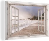 La photo est imprimée sur une toile robuste de 260 grammes de 0,41 mm d'épaisseur. Le lin est tendu étroitement sur un cadre en bois de deux centimètres d'épaisseur. Ce cadre en bois est en bois de pin certifié PEFC de qualité. Un système de suspension peut être commandé en option avec le produit pour fixer facilement l'impression au mur.