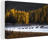 La photo est imprimée sur une toile robuste de 260 grammes de 0,41 mm d'épaisseur. Le lin est tendu étroitement sur un cadre en bois de deux centimètres d'épaisseur. Ce cadre en bois est en bois de pin certifié PEFC de qualité. Un système de suspension peut être commandé en option avec le produit pour fixer facilement l'impression au mur.