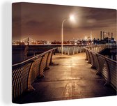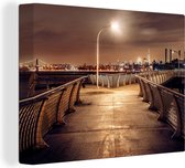 Tableau Toile Ville - Lampadaire - Nuit - 140x90 cm - Décoration murale