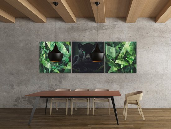 Vous souhaitez donner à votre intérieur un look moderne et élégant ? Ce tableau triptyque Panthère est un ajout impressionnant à n'importe quelle pièce. La conception du triptyque se compose de trois panneaux parfaitement assortis qui forment ensemble une œuvre d’art puissante. Idéal pour les salons, les chambres et les bureaux, ce tableau apportera une atmosphère dynamique et élégante à votre intérieur.