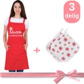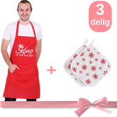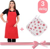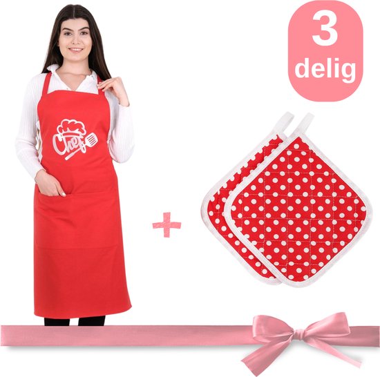 Tablier de chef Tavas 65 x 95 cm - Rouge - Tablier de cuisine avec 2 maniques - Coffret cadeau 3 pièces - Tablier femme - Qualité hôtelière