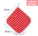 Ce coffret spécial de Noël comprend2 maniques rouges à pois blancs — Idéal comme cadeau ou pour ajouter une touche festive à votre cuisine.