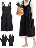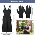 Tablier Tablier de cuisine en coton pour femme Tablier de cuisine noir Tablier en coton à l'entrejambe Tablier à bavette Tablier en coton de 87 cm de longueur Tablier avec poches Gants de jardinage pour l'artisanat de jardinage, noir