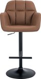 Tabouret de bar CLP Natoma - Avec dossier - Ajustable - Avec repose-pieds - Simili cuir - Métal noir mat marron clair