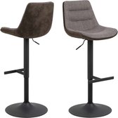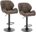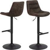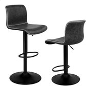 Tabouret de bar réglable - Tabouret de bar - Tabourets de bar avec dossier - Set de 2 - Rotatif à 360° - Ressort à gaz - Repose-pieds en acier - Siège en cuir - Cuir marron foncé