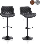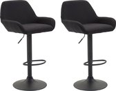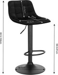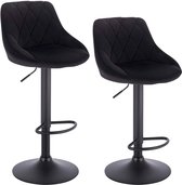Tabourets de bar en velours Geral - Réglable en hauteur - Avec dossier - Set de 2 - Zwart - Chaises de bar ergonomiques - Cuisine et bar - Hauteur d'assise 59-81cm
