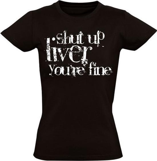 Vous avez passé une soirée un peu trop agréable en sortant? Tais-toi Foie; tu vas bien; t-shirt drôle pour dames.