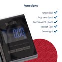 Cette balance de poche de la marque de balances la plus célèbre au monde, d'une précision de 0,01 gramme, a une capacité de pesée maximale de 200 grammes. La balance de poche Tanita dispose également d'un écran LCD clair à cinq chiffres fourni