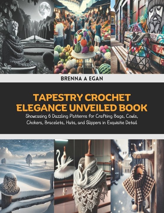 Tapestry Crochet Elegance Unveiled Book Présentant 6 modèles éblouissants pour fabriquer des sacs, des capots, des colliers, des bracelets, des chapeaux et des Slippers avec des détails exquis.