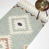Créez une atmosphère cocooning dans votre salon ou votre chambre avec ce tapis Chindi tissé en chanvre 2200 g/m² à motif losange gris et blanc.