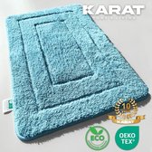 Badmat BOTC - Antidérapant - 75x50cm - Badmat absorbant - Tapis de douche - Tapis de toilette - Blauw/ Wit