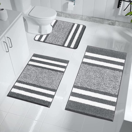- Les tapis de salle de bain Pauwer Luxurious et confortables (45 cm x 65 cm + 50 cm x 80 cm) et le tapis de toilette en forme de U (50 cm x 60 cm) sont fabriqués en microfibre épaisse et veloutée, offrez à vos pieds un confort et un massage exceptionnels. sentiment. Chaque microfibre mesure environ 15 mm de long, le tapis de salle de bain offre un soutien ultra soft à vos pieds.