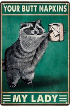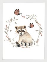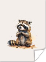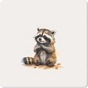Une aquarelle représentant un raton laveur assis par terre.