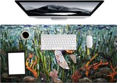 Le tapis de souris est en vinyle. Il s'agit d'un matériau léger et contient une couche antidérapante sur la face inférieure. En conséquence, le tapis de souris xxl ne glisse pas d'avant en arrière pendant l'utilisation. Le dessus est fait de micro-texture, ce qui permet à la souris de se déplacer facilement sur le tapis de souris. Le grand tapis de souris est donc également excellent à utiliser comme tapis de souris de jeu !