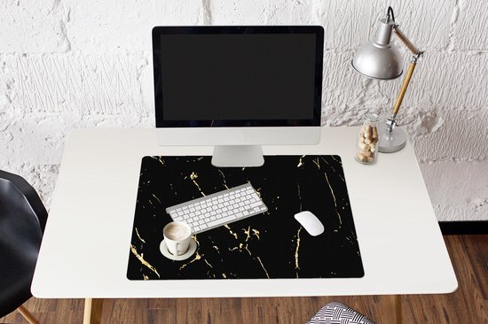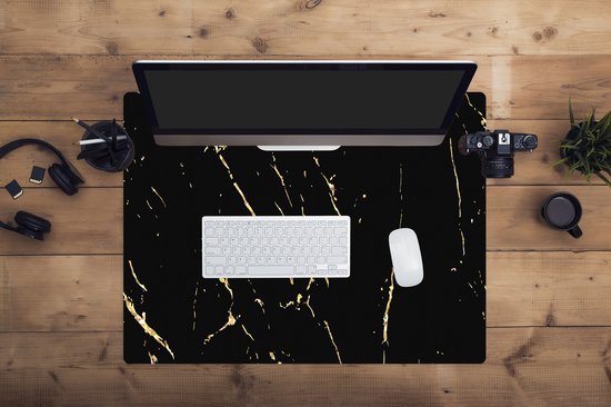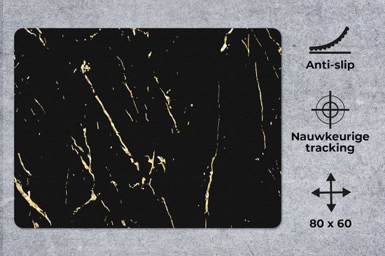 Tapis de souris XXL - Sous-main - Tapis de bureau - Marbre - Zwart - Or - Luxe - 80x60 cm - Tapis de souris XXL
