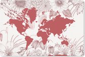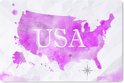 Carte du Wereldkaart des États-Unis peinte à l'aquarelle rose. La carte est sur un fond clair.