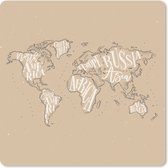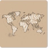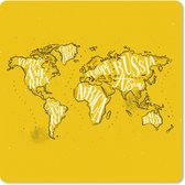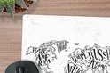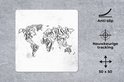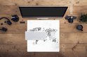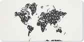 Tapis de souris XXL - Sous-main - Tapis de bureau - Wereldkaart - Zwart - Wit - Lettres - 50x50 cm - Tapis de souris XXL