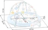 C'est pourquoi nous attachons au tapis des speelgoed multifonctionnels que vous pouvez accrocher aux barres - laissez quelque chose vibrer, tinter ou bruisser ! Le speelgoed comprend même un jouet qui grince : un crabe !