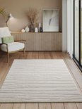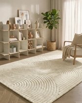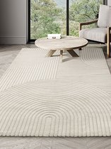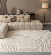 Tapis Elio Japandi - Tapis moderne à poils ras avec motif abstrait effet grande profondeur Crème-200 x 290 cm