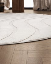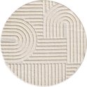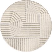 Tapis Hangar Japandi ART - Tapis Rond Boho - Scandinave - Poils Ras Uni - Crème - 200 CM ROND