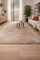 Tapis moelleux Happyment Soft - Moquette à poils longs - Marron - Lavable - Salon, chambre, chambre d'enfant - 160x230cm