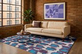 Tapis Rectangulaire Bleu avec Motif Abstrait et Formes Géométriques - Poum Poum - Clear Sky - 80 x 150 cm